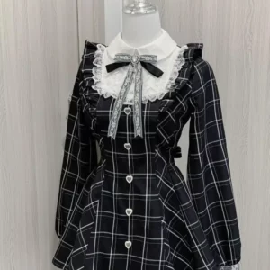 $128.59 – $171.19Price range: $128.59 through $171.19Harajuku Sweet Bow Black Plaid Dresses All-match Slim Fit Kawaii Lolita Dress for Women Autumn New Long Sleeve Vestidos De Mujer